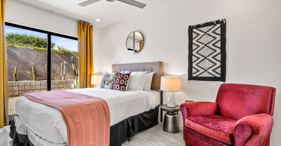 Each of the 5 spacious bedrooms includes a private en-suite bath & direct outdoor access, while an attached casita-style suite offers a kitchenette & separate entrance — perfect for guests, multi-gen living, or extra rental income. A stylish powder room serves guests.